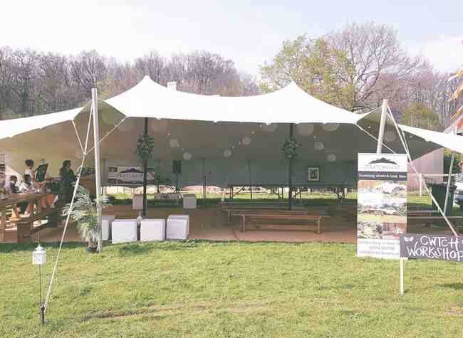 Cwtch the Bride Cwtchfest 2017 One of our new white stretch tents being put up for the first time at Cwtchfest 2017.